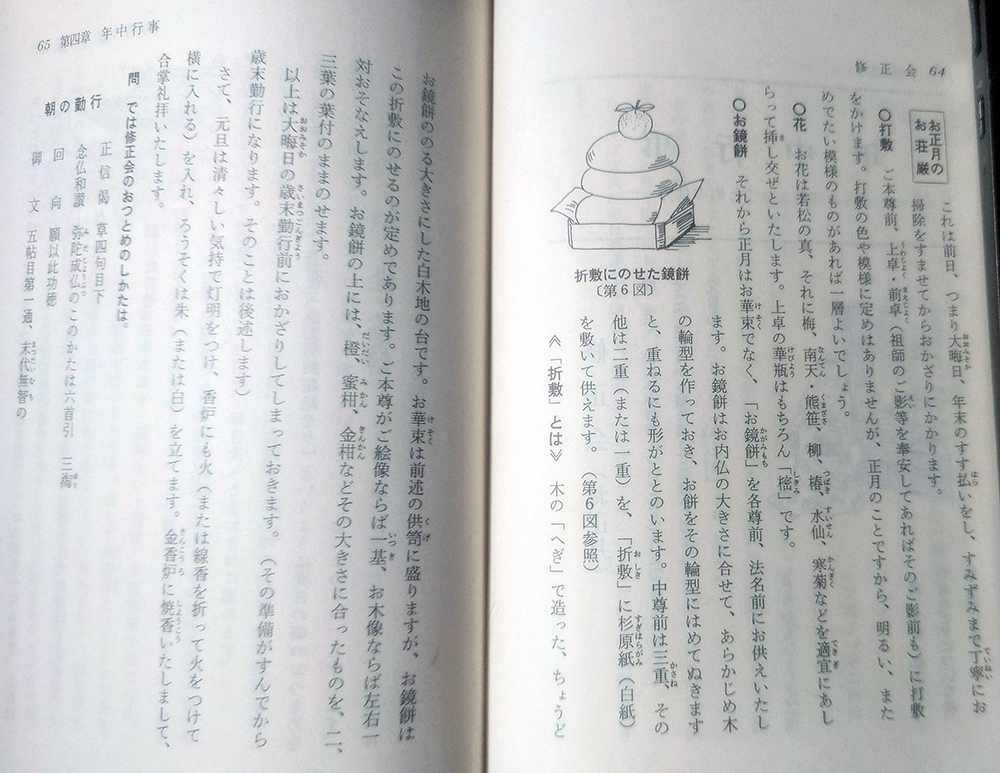 お正月ですが、同様な荘厳だと思っていたら、どうも違っていたようです。実は拙僧も、今回の手引本を、じっくりと手に取るまで、知らなかったのですけど、図3(写真3枚目)のように掲載されております。