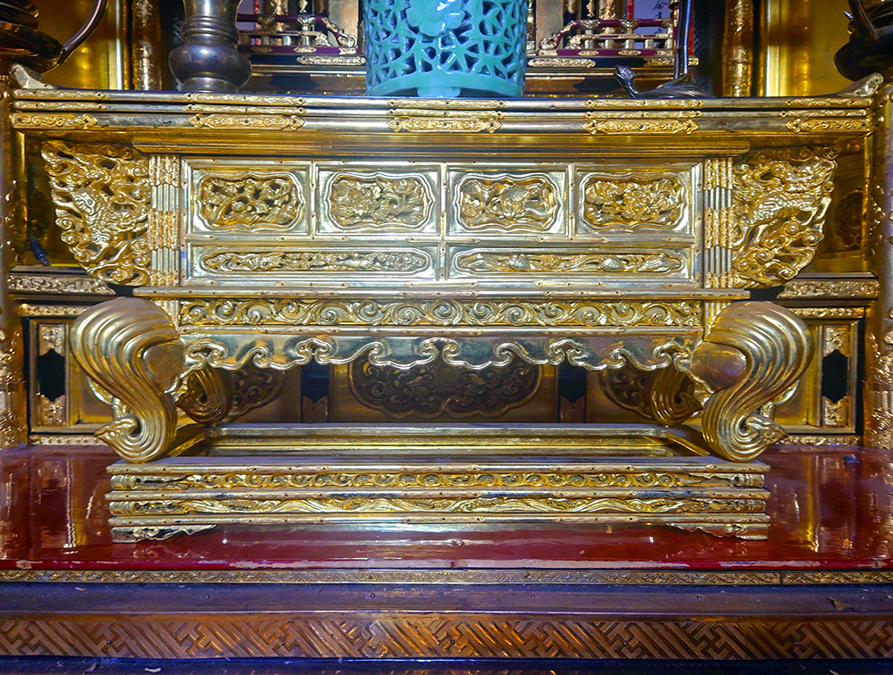 今回は前卓(まえじょく 写真上)の話から始まります。この前卓というのは、お内仏の中央に置く、ひときわ目立つ机(つくえ)と思ってもらえばよろしいです。